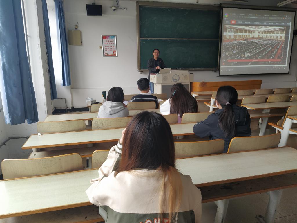 5月10日beat365正版唯一官网必一组织40多名在校生在昌黎校区C307教室观看了现场直播,学院党委副书记副院长孙胜显、团委书记王明洁与同学们一起观看了直播。同学们各位就坐、全程佩戴口罩。会后,孙书记与同学们一起进行了思想交流。