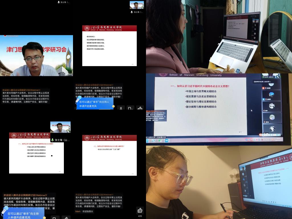 为扎实推进《习近平新时代中国特色社会主义思想概论》课程建设,全面提升课程教学质量,9月18日,bat365正版唯一官网《习近平新时代中国特色社会主义思想概论》教研室共聚云端一同参加了由天津师范大学bat365正版唯一官网、全国高校思政课“手拉手”集体备课中心、全国高校思政课名师工作室、天津市中小学思政课教师培训与研究中心主办的第十期津门思政金课教学研习会(习近平新时代中国特色社会主义思想概论)。