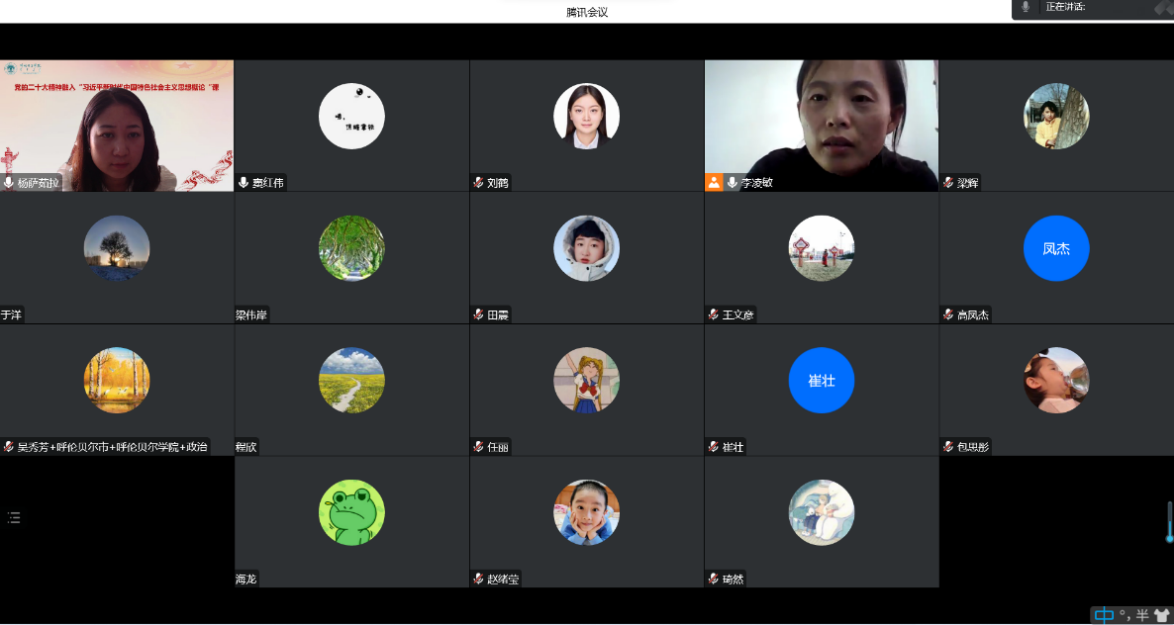 11月7日下午,毛泽东思想和中国特色社会主义理论体系概论教研室召开二十大精神融入“毛泽东思想和中国特色社会主义理论体系”集体备课会,课程负责人李凌敏首先对课程的课时、内容进行了介绍,接下来对党的二十大如何融入该课程进行了详细讲解,认为教师们要准确把握党的二十大的精神要义,利用专题学习、专题研讨、专题辅导等形式,系统推进学习培训,对党的二十大精神进行深度学习,回应学生关切,力求学深学透、融会贯通,将二十大精神有机融入教学。与会教师认为,该课程要采用课程专题知识拓展的形式融入二十大报告的具体内容,同时,结合“百年未有之大变局”“实现中华民族伟大复兴”等主题,将二十大报告中新提法、新表述讲给学生。