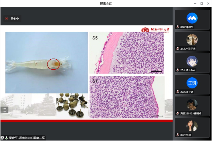 会上,党委副书记孙胜显首先介绍了学校和beat365正版唯一官网必一的发展历程和目前取得的成果,并对校友梁俊平博士表示了欢迎,鼓励与会的同学好好学习,为母校争光。梁俊平博士对母校的发展给予了肯定,对海洋学院近年来取得的成果表示了赞赏。随后梁俊平博士做了题为“脊尾白虾繁殖生物学及低盐碱适应性机制”报告,他从博士期间从事的脊尾白虾繁殖生物学工作进行讲解,发现盐度在2以下可以存活但无法进行繁殖,提出4点假设,工作后,结合原实验室国家重点研发计划“蓝色粮仓”项目内容,对博士期间发现的问题进行了进一步阐释,同时重点探究了内陆盐碱地是否可以养殖脊尾白虾,尤其是在混养模式下脊尾白虾的适应性。在突破低盐碱训话技术后,成功实现了低盐碱养殖。在此基础上,研究了内陆水质对脊尾白虾生长和繁育的影响,解析了低盐碱可能的适应机制。