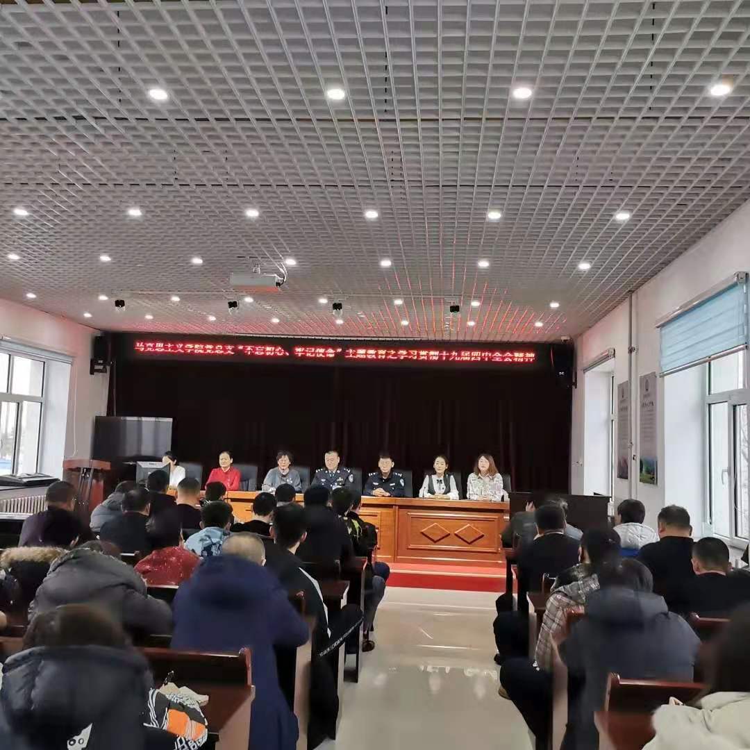 2019年11月22日下午,bat365正版唯一官网党总支书记刘凤琴、副书记刘琳、教师李琳颖、张舒、吴娇、李昱以及优秀学生代表赴鄂温克自治旗巴彦托海司法所进行“学习贯彻十九届四中全会精神”理论宣讲。司法所组织辖区保释人员、矫正人员等40余人以及司法所全体工作人员参加宣讲活动。主讲教师李琳颖。