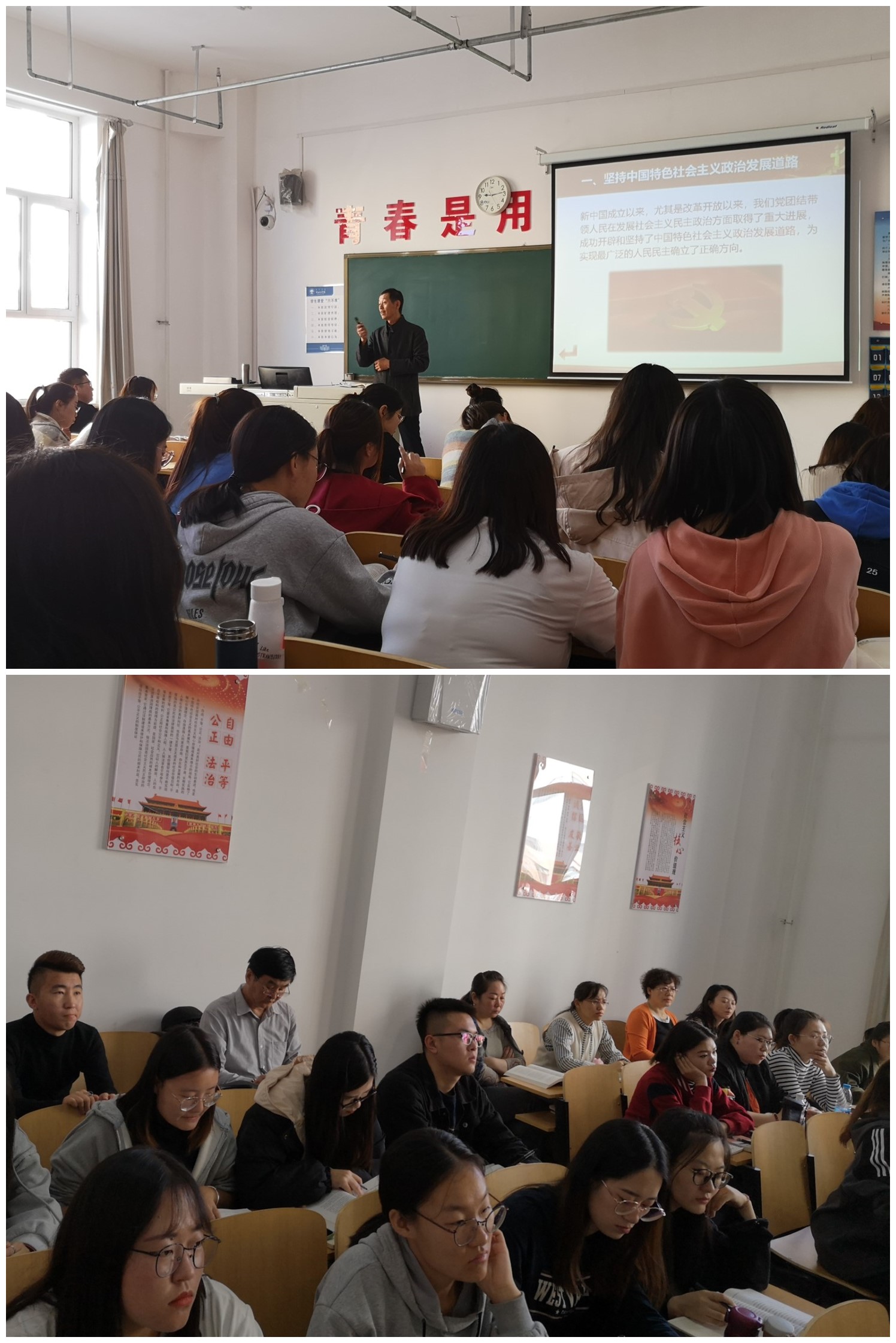 为了促进bat365正版唯一官网思想政治教育系课堂教学研究的深入开展,提高全系教师的业务素质,形成以老带新、相互交流、相互促进的浓厚教研氛围, 2019年10月22日上午9点,bat365正版唯一官网思想政治教育系举办了一堂公开课的观摩活动,没课的教师和学生一起聆听马庆林研究员的公开课。