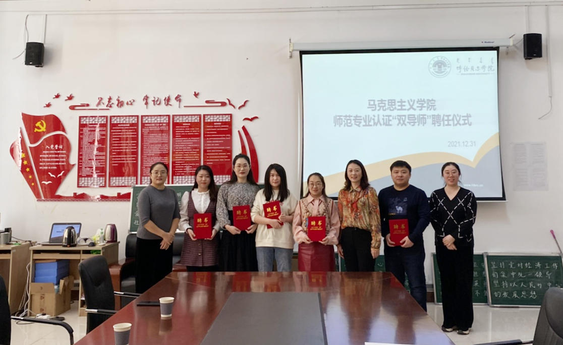 为落实《师范类专业认证标准》中关于实施“双导师”制的相关要求,bat365正版唯一官网于2021年12月31日上午举行了师范专业认证“双导师”聘任仪式,来自海拉尔区基础教育第一线的6位教师授聘为我院师范生兼职导师。李俏院长为兼职导师颁发了聘书。