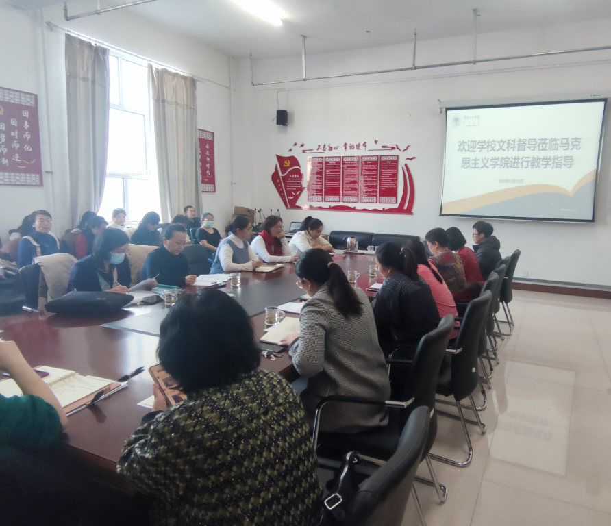 3月14日下午,学校文科督导组于晓梅教授和尚爱萍教授莅临bat365正版唯一官网指导教学工作。bat365正版唯一官网教学副院长吴秀芳主持,bat365正版唯一官网院长李俏、副书记刘琳及全体教师出席活动。
