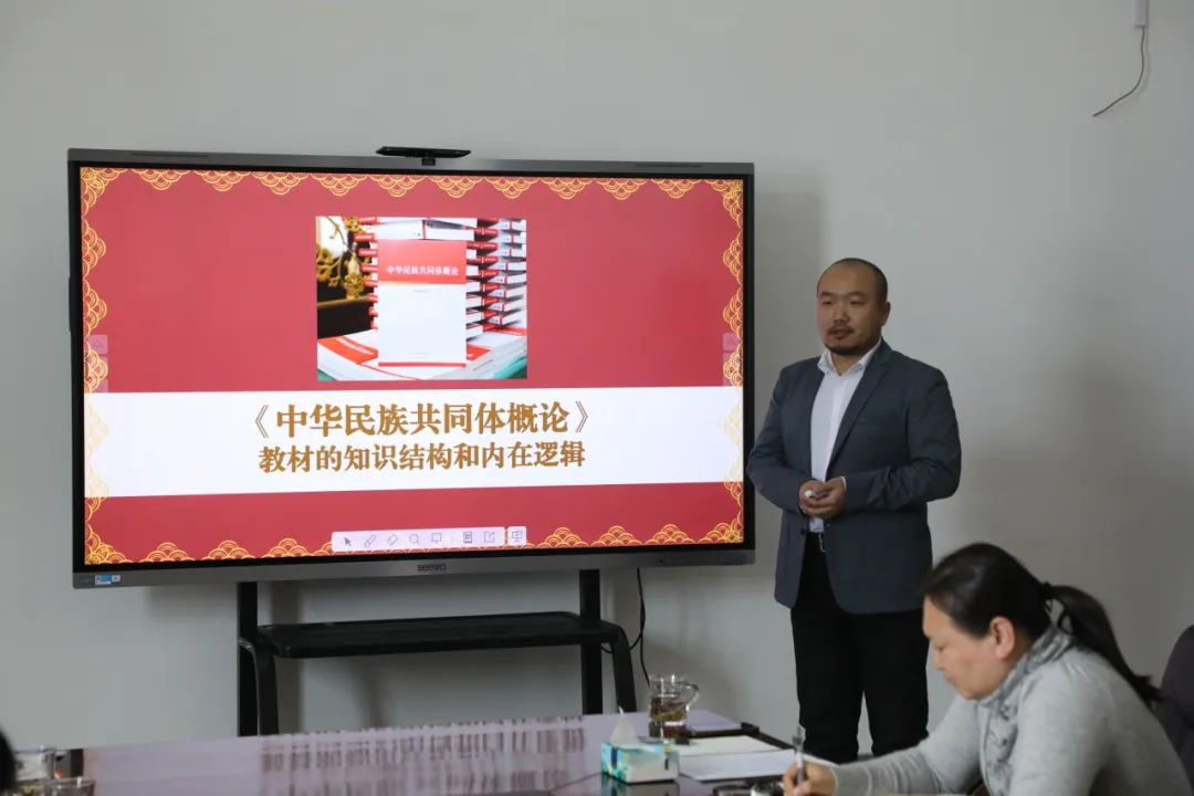 课程骨干教师张舒主持了《中华民族共同体概论》集体备课,围绕教材的知识结构和内在逻辑等方面给出了备课建议,部分思政课教师代表作了点评。