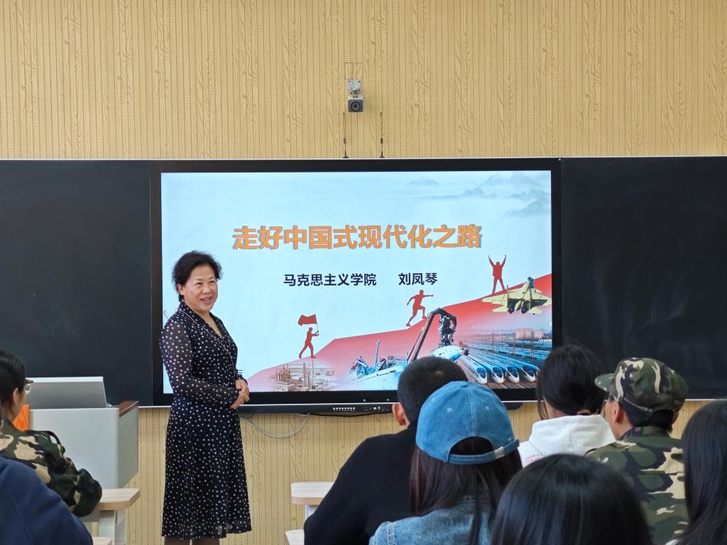 讲座围绕三个方面展开:一是中国式现代化的探索;二是中国式现代化的特征;三是中国式现代化的本质要求。刘凤琴研究员用具体形象生动的实例,深入浅出的将中国式现代化的特征和本质要求做了详细分析阐释,帮助学生充分认识到中国式现代化与西方现代化的本质区别,世界上既不存在定于一尊的现代化,也不存在放之四海而皆准的现代化标准,一个国家,一个民族,只有找到适合自己条件的道路,才能实现自己发展的目标。十八大以来,党成功推进和拓展中国式现代化,中华民族伟大复兴进入不可逆转的历史进程。