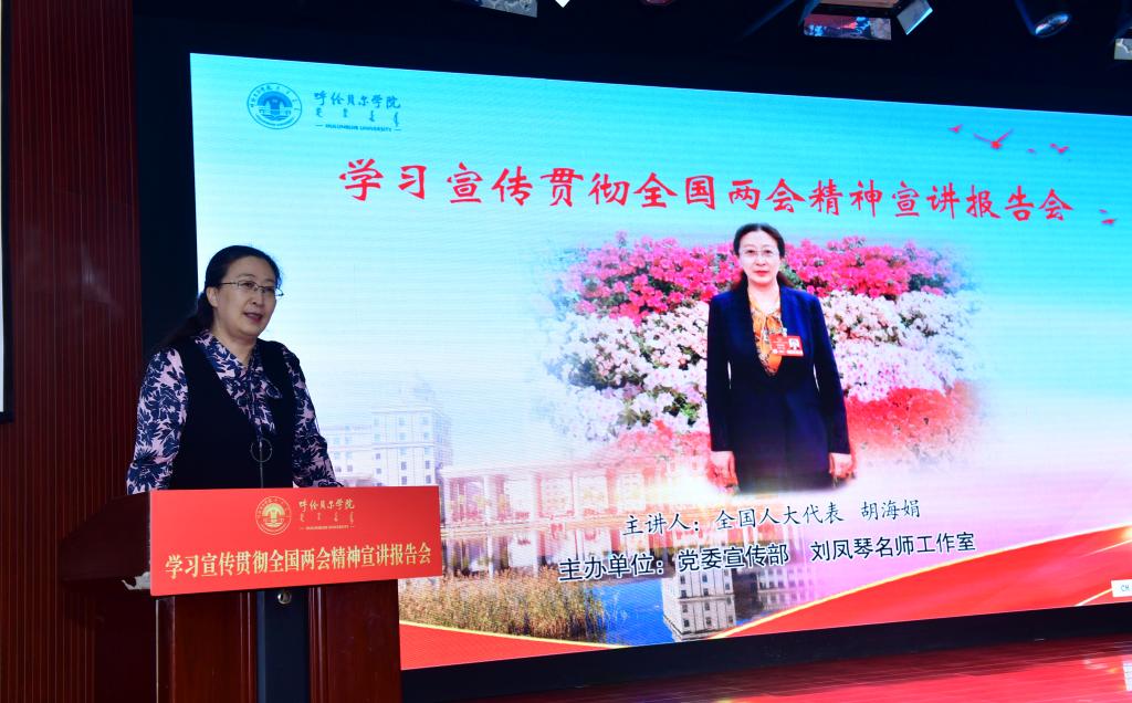 为深入学习宣传贯彻2025年全国两会精神,引导青年学生坚定理想信念、勇担时代使命,3月26日下午,全国人大代表、呼伦贝尔市海拉尔第二中学教师胡海娟走进bat365,为青年学生带来了一场别开生面的全国两会精神宣讲报告会。140余名青年学生齐聚崇文楼B座小剧场共同聆听报告。此次宣讲报告会由党委宣传部和刘凤琴名师工作室共同主办。