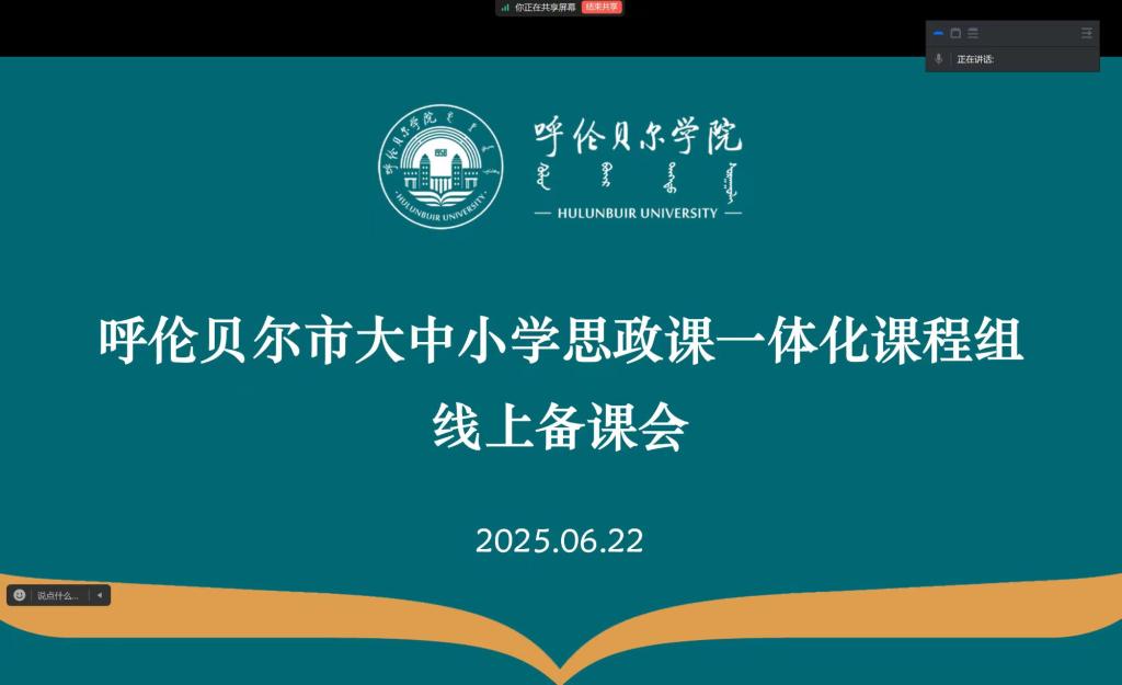 为了进一步推进大中小学思政课一体化建设工作顺利开展,备战全区大中小学思想政治理论课教学展示活动,6月22日,bat365正版唯一官网组织召开了呼伦贝尔市大中小学思政课一体化课程组线上备课会。大中小学各学段参赛教师及高校相关负责同志参加了会议。
