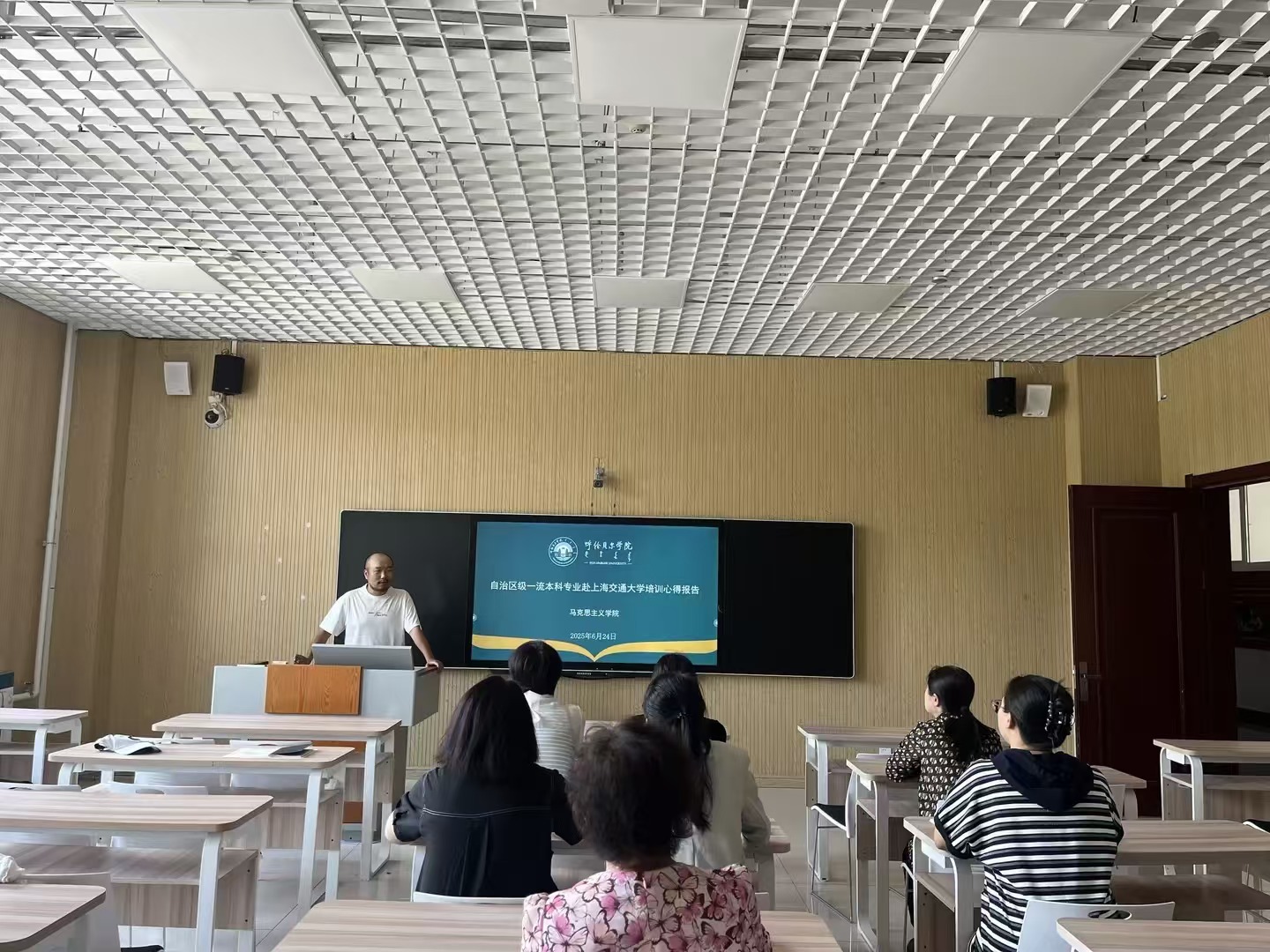 6月24日,bat365正版唯一官网举行自治区级一流本科专业赴上海交通大学培训经验交流活动,中国近现代史纲要教研室主任张舒老师重点围绕三个方面介绍了本次培训的心得体会。