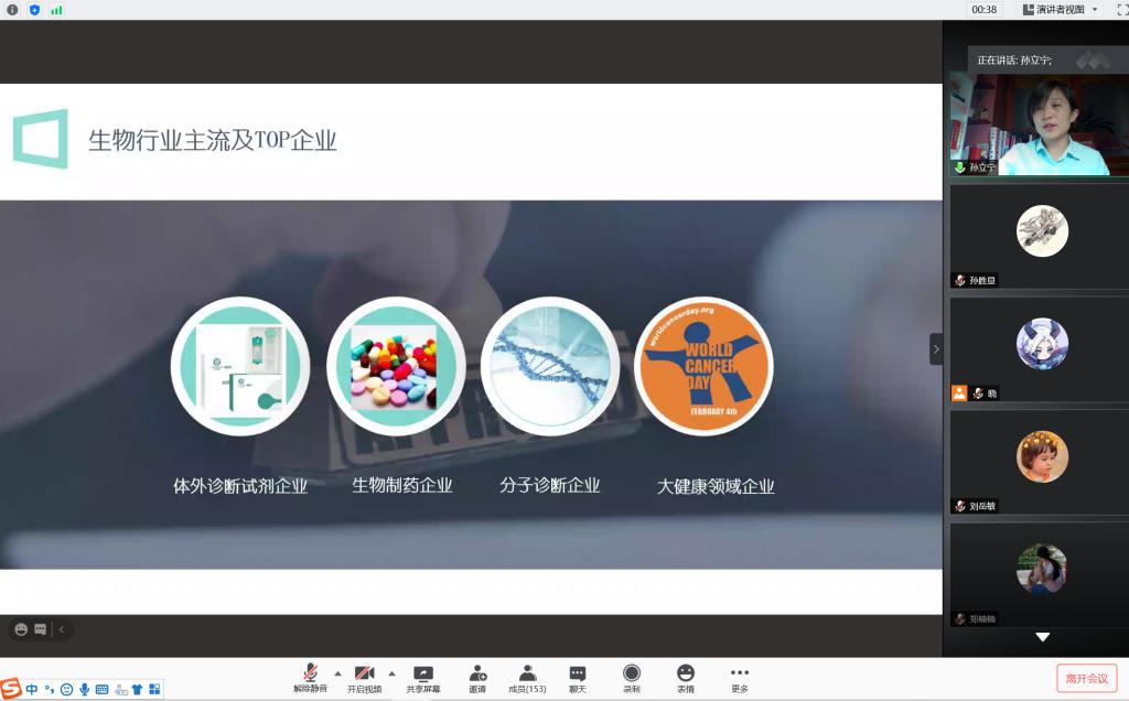 2020年10月11日,beat365正版唯一官网必一邀请浙江诺辉健康科技有限公司高级经理孙立宁通过网络对学院生物科学、生物技术学生进行《生物科学/生物技术专业就业前景》的专题教育教学报告。学院领导、专业老师和学生约300人听取了报告。