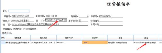 部门:同经费报销单,科研经费选择部门必须是科研项目所在部门;